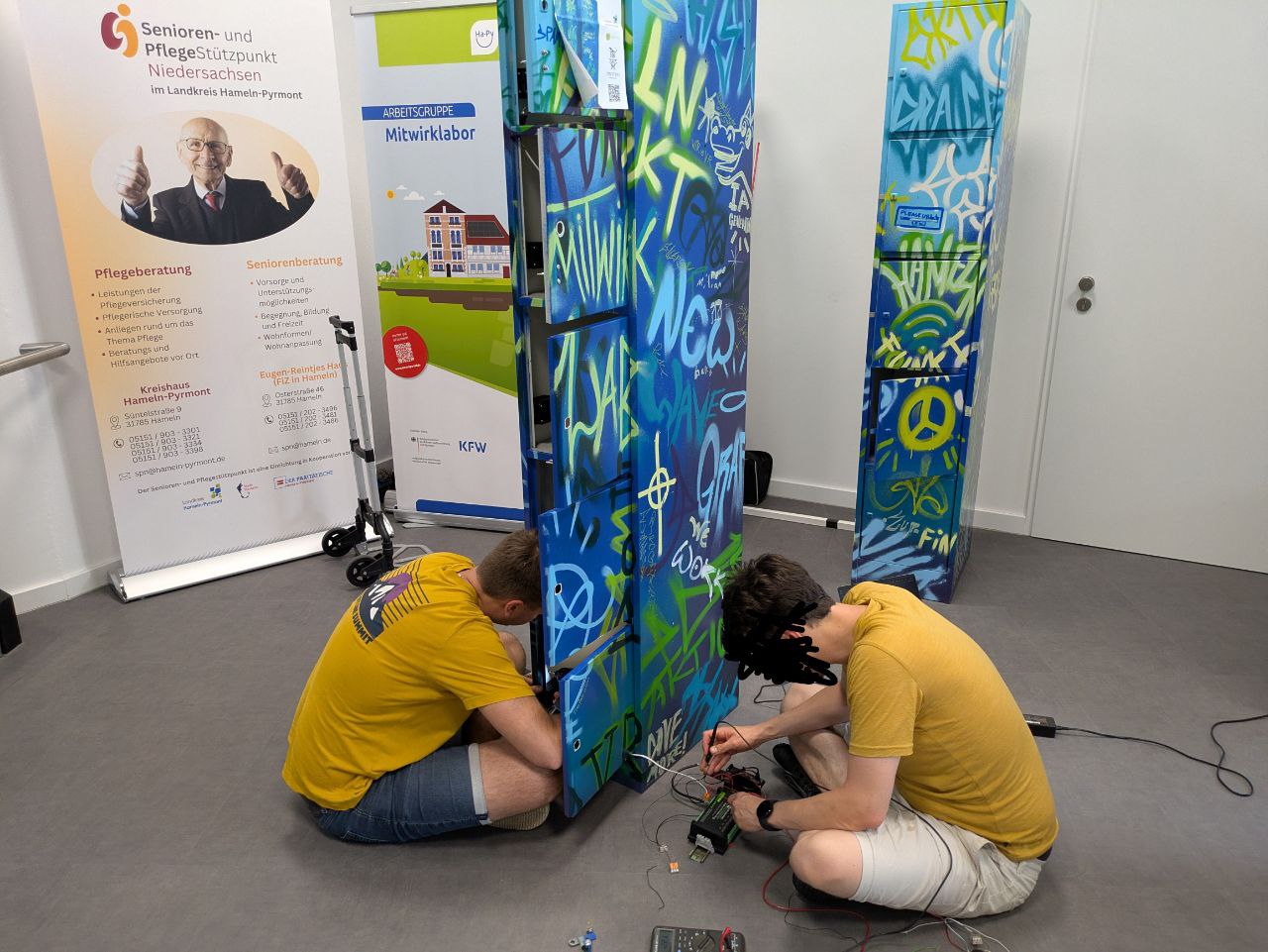 Wir bauen die Lösung außerdem so, dass sie einfach zu verwenden ist. Unser Schrank ist im Sinne von digitaler Teilhabe z.B. auch für Senior:innen und digital weniger affine Gruppen gut geeignet.